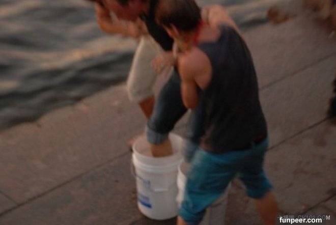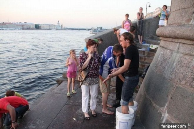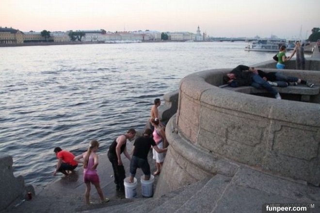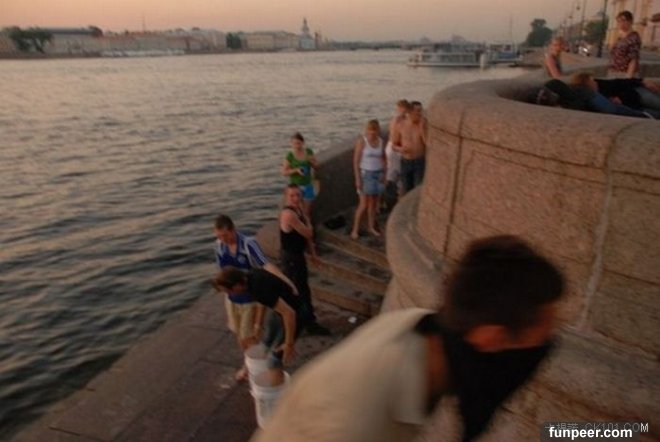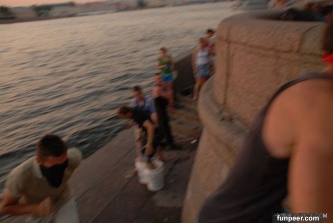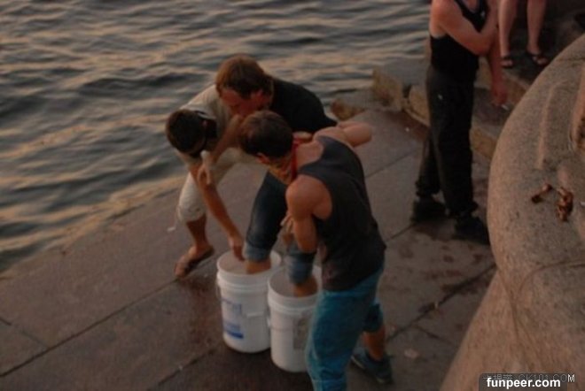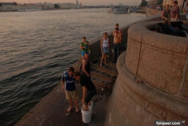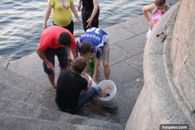 An interesting incident happed in St. Petersburg. Some guys placed legs of their friend into pails, filled them with cement and tried to push him into the river. They just wanted to have some fun!