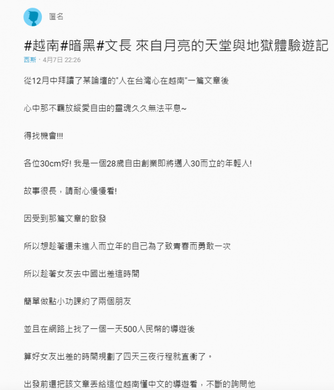 出發前還把該文章丟給這位越南懂中文的導遊看,不斷的詢問他當天我也沒回飯店睡直接在妹那邊待到中午12點左右才回去收行李