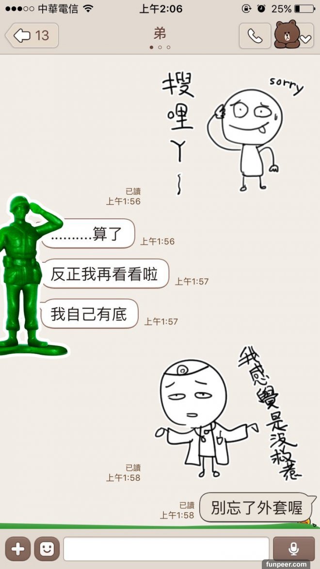 ▼而姊姊各種「超靠北貼圖」的回應逐漸瓦解弟弟的心防!