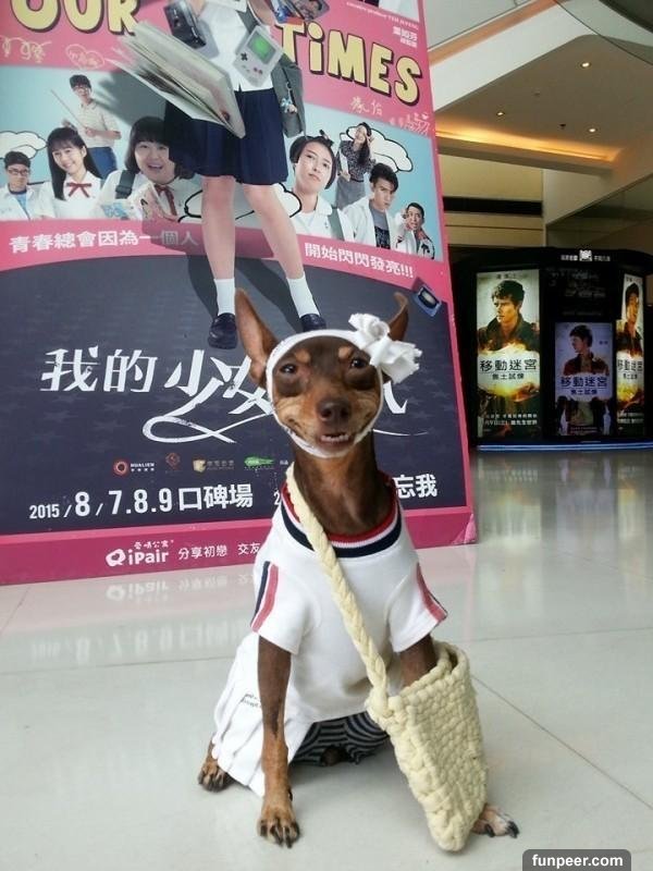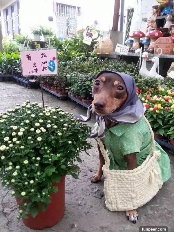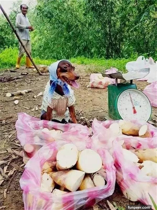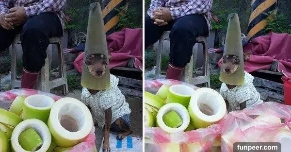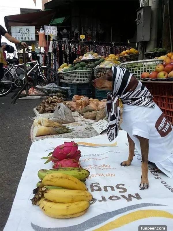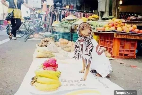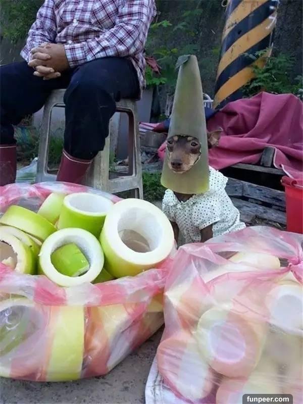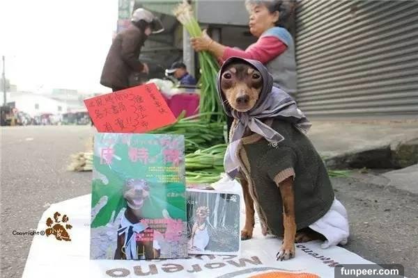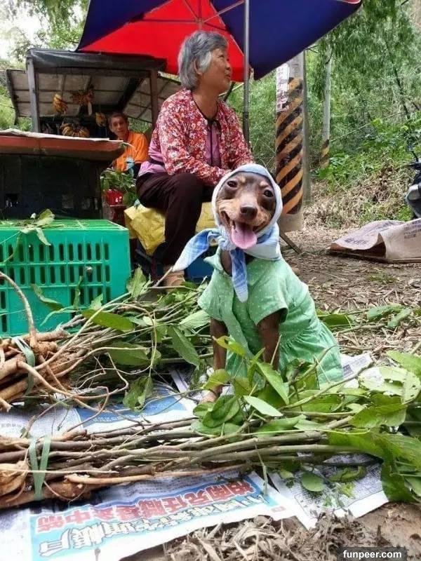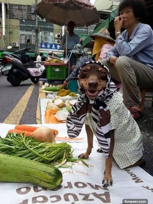 翻拍TT下同原來照片中的本尊是一隻叫做「小皮」的狗狗,因為超接地氣的打扮,大獲網友關注!它經常幫助一些小攤、店家來販賣他們的商品,增添人氣,務農的大媽大叔都超愛它!好有鄉土氣息的狗狗!