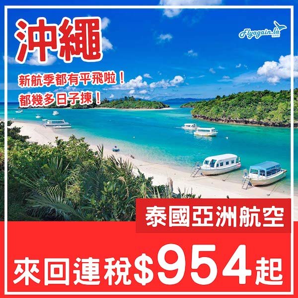 【沖繩】新航季都有平飛喇!日子選擇多!泰國亞洲航空來回沖繩連稅$954起!9月至2026年3月指定日子出發
