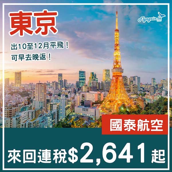 【東京】出10至12月平飛!可早去晚返!國泰航空來回東京連稅$2,641起!12月11日或之前出發
