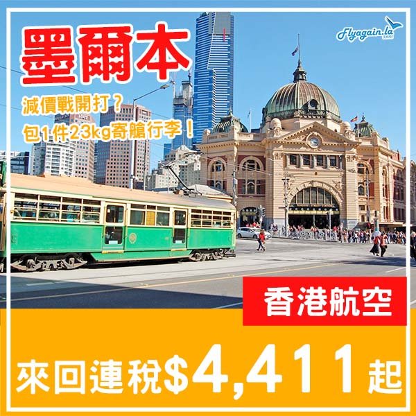【墨爾本】正!開始有減啦!香港航空直航來回墨爾本連稅$4,411起!12月、2至3月指定日子出發