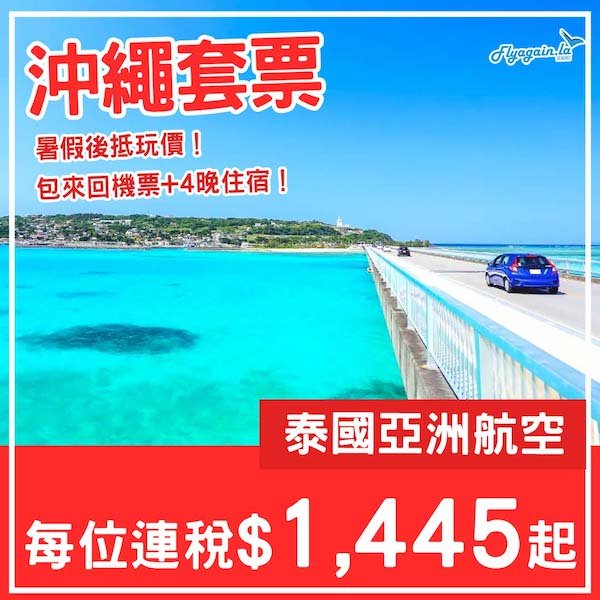 【沖繩】暑假後抵玩價!沖繩5日4夜套票,包來回機票+4晚住宿,每位連稅$1,445起!8月尾至9月尾出發