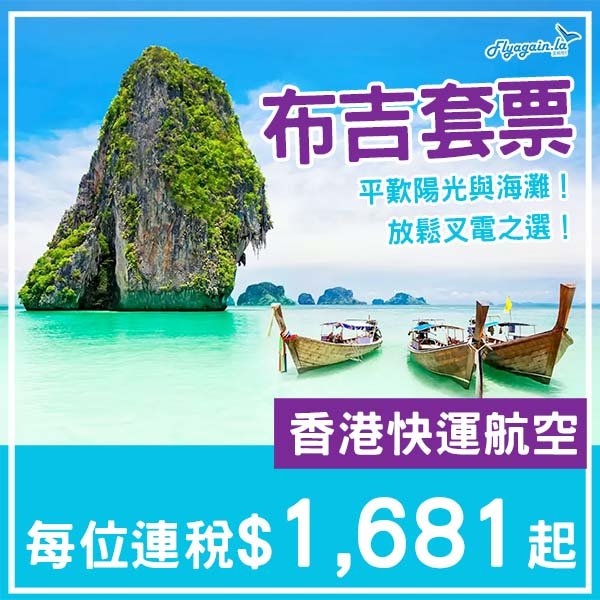 【布吉】平歎陽光與海灘!布吉5日4夜套票,包來回機票+4晚四星或以上酒店,每位連稅$1,681起!10月至2026年3月指定日子出發
