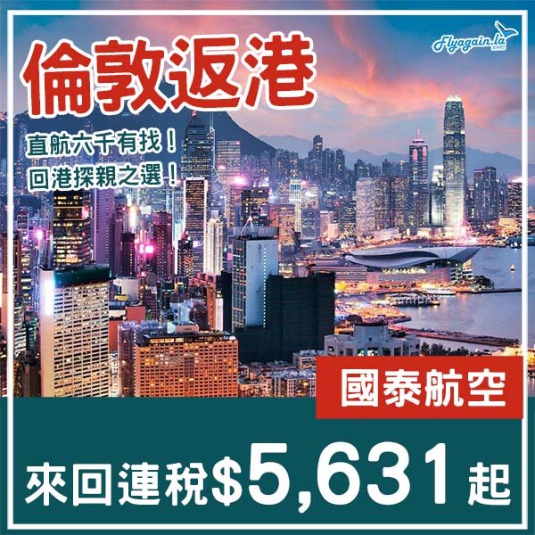 【倫敦回港】六千有找!直航返香港!國泰航空倫敦來回香港連稅$5,631起(約£532起)!10月至2026年3月指定日子出發