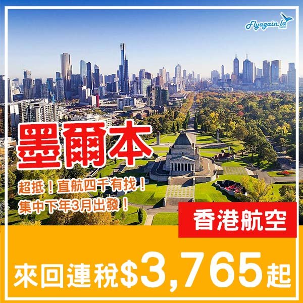 【墨爾本】激抵直航!四千有找!香港航空來回墨爾本連稅$3,765起!2026年2月尾至3月尾出發