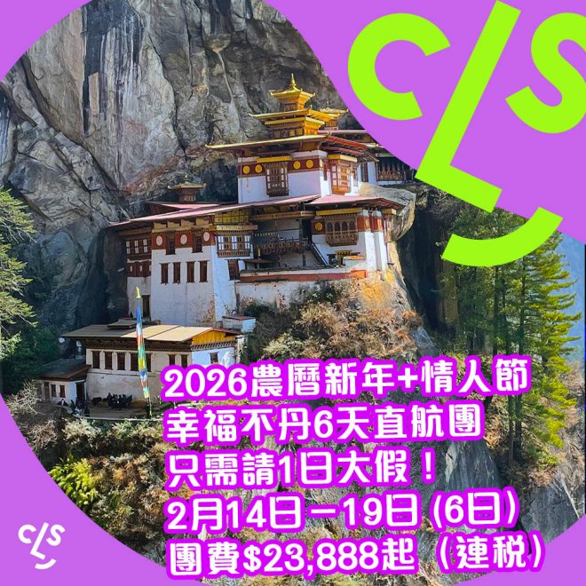 【旅行團】旺季不加價!聖誕/農曆新年+情人節出發!請1至2日大假!幸福不丹6天香港直航團,團費$23,888起,12月及2026年2月出發