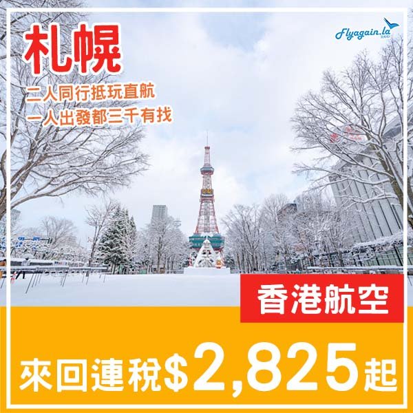 【札幌】直航三千有找・二人再平少少・香港航空來回札幌連稅$2,825起・2026年1月至4月指定日子出發