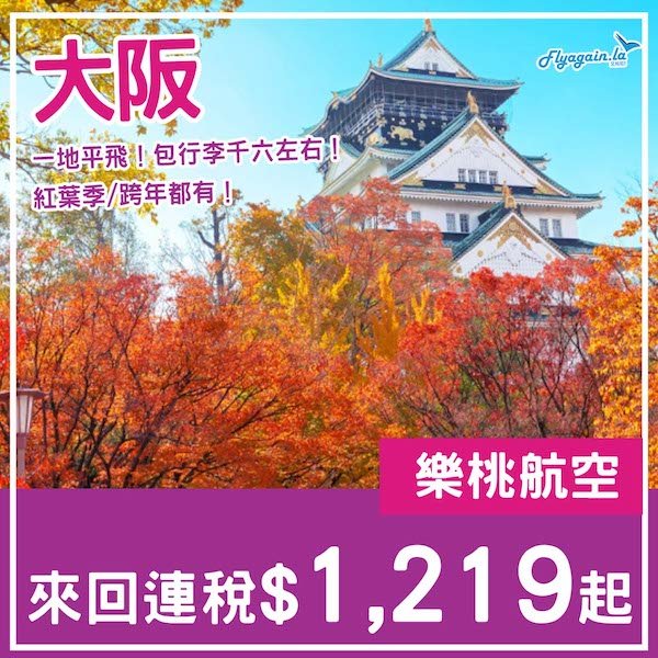 【大阪】仲係好多飛!可以plan定睇紅葉!樂桃航空來回大阪連稅$1,219起!7月中至2026年2月頭出發