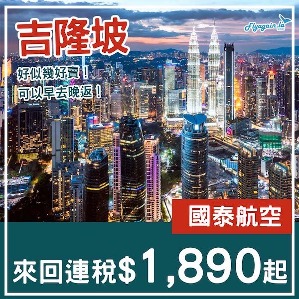 【吉隆坡】好似銷情唔錯?國泰航空來回吉隆坡連稅$1,890起,可早去晚返!8月至11月指定日子出發
