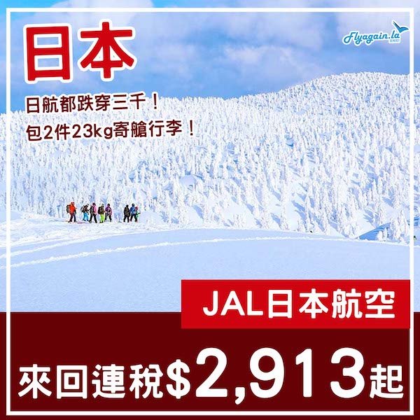 【日本】日航都減到三千有找!日本航空來回日本各地連稅$2,913起,可open jaw+中停東京!8月中至2026年2月尾出發