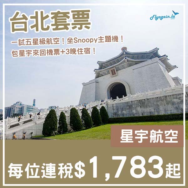 【台北】一試五星級航空!台北4日3夜套票,包星宇來回機票+3晚住宿,每位$1,783起!8月尾至12月尾出發