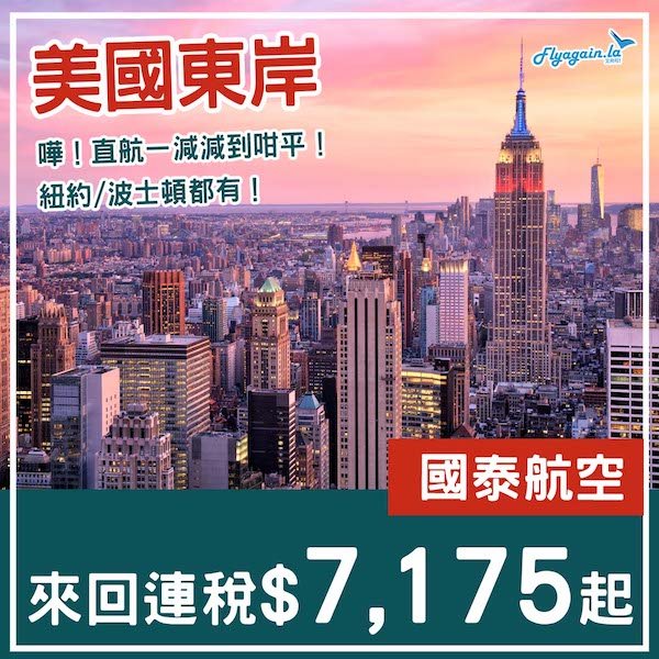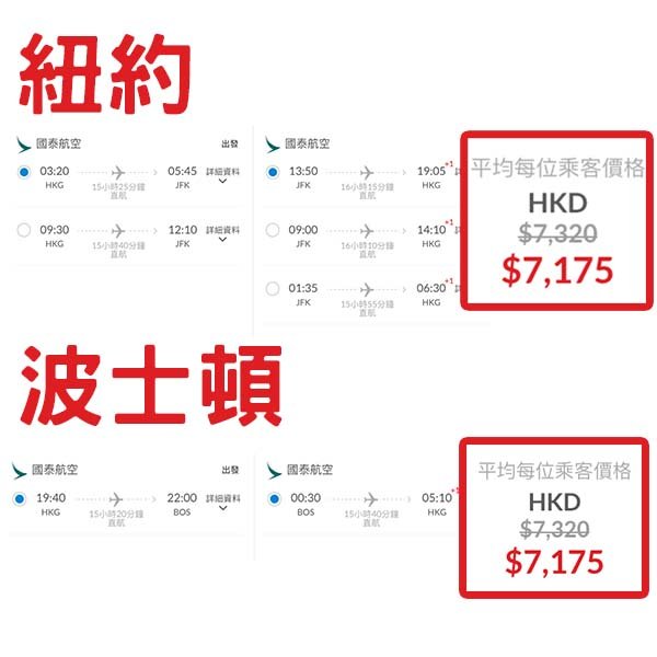 【美國】嘩!一跌跌到咁平!國泰航空來回紐約/波士頓連稅$7,175起!9月至12月指定日子出發