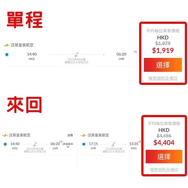 結論:飛倫敦比較少有平飛,而家包行李單程唔使二千,來回唔使四千五,激抵!雖然航程就長少少,日子選擇都少,但想去英國都可以睇睇,睇下大家啱唔啱用啦~