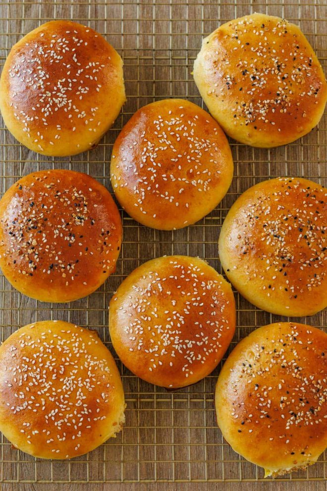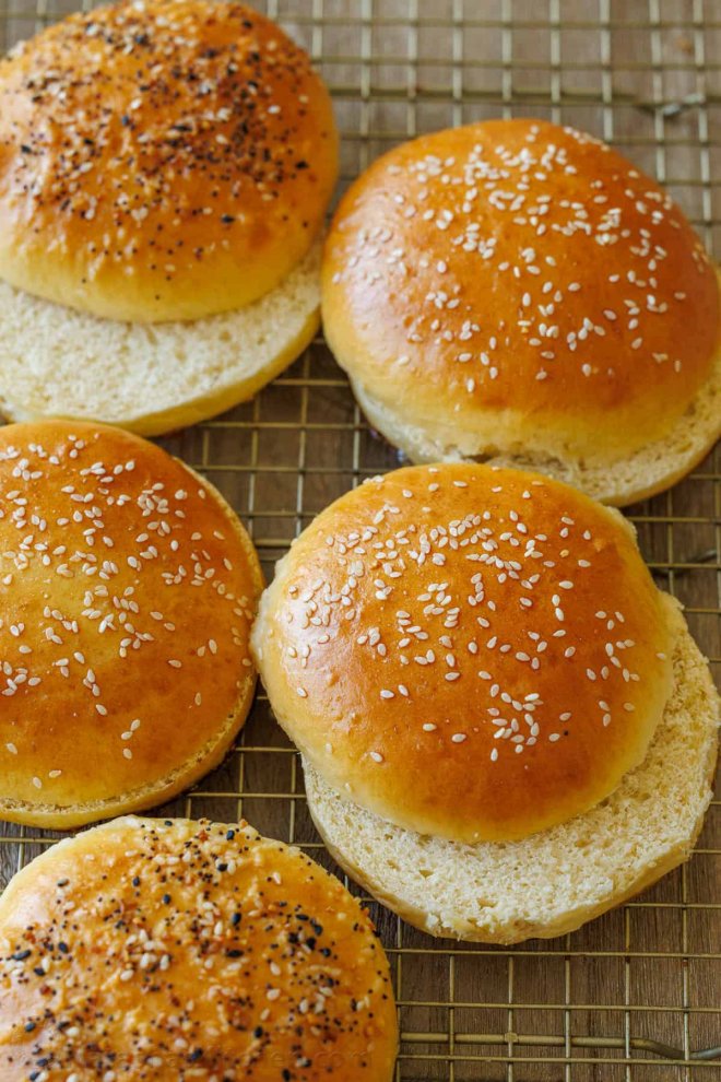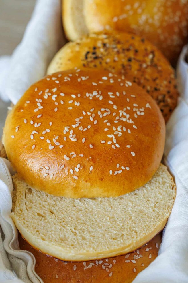 How to Serve Homemade Hamburger BunsOnce ready to serve, slice the burger buns with a serrated knife, and then load them up with your favorite sandwich or burger toppings (don’t miss the Cowboy Burgers in the Natasha’s Kitchen Cookbook). Here are a few of our favorite ways to use burger buns: