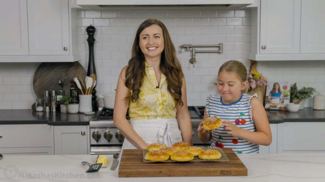 Burger Buns Video TutorialWatch Natasha make these homemade hamburger buns from scratch! You’ll never reach for the store-bought burger buns again. HUNGRY FOR MORE? Subscribe to Natasha’s Newsletter and YouTube for meal-time inspiration and let’s connect on social! Follow us on Facebook, Instagram, Pinterest, and X for a peek behind the scenes of Natasha’s Kitchen.
