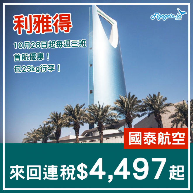 【利雅得】去搵真王子!10月28日起每週三班,國泰來回連稅$4,497起,包23kg行李,2025年3月29日前出發