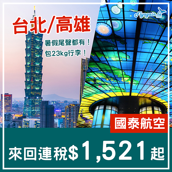 來回連稅價錢:HK$1,521起(高雄)、HK$1,595起(台北)