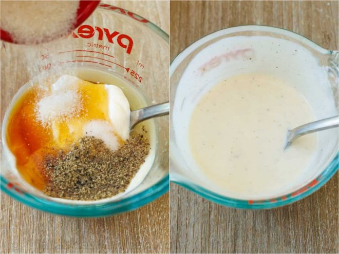 The Best Coleslaw DressingA good coleslaw dressing can really make or break a recipe. This homemade slaw dressing is amazing; it’s creamy, tangy, and not overly sweet. I love that the dressing only uses 5 ingredients! To prepare the dressing, combine all of the ingredients until well incorporated and creamy: