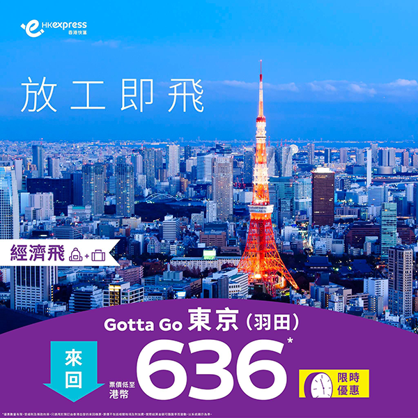 【東京羽田】早鳥劈價!香港快運來回連稅$1,421起,2025年3月14日前出發