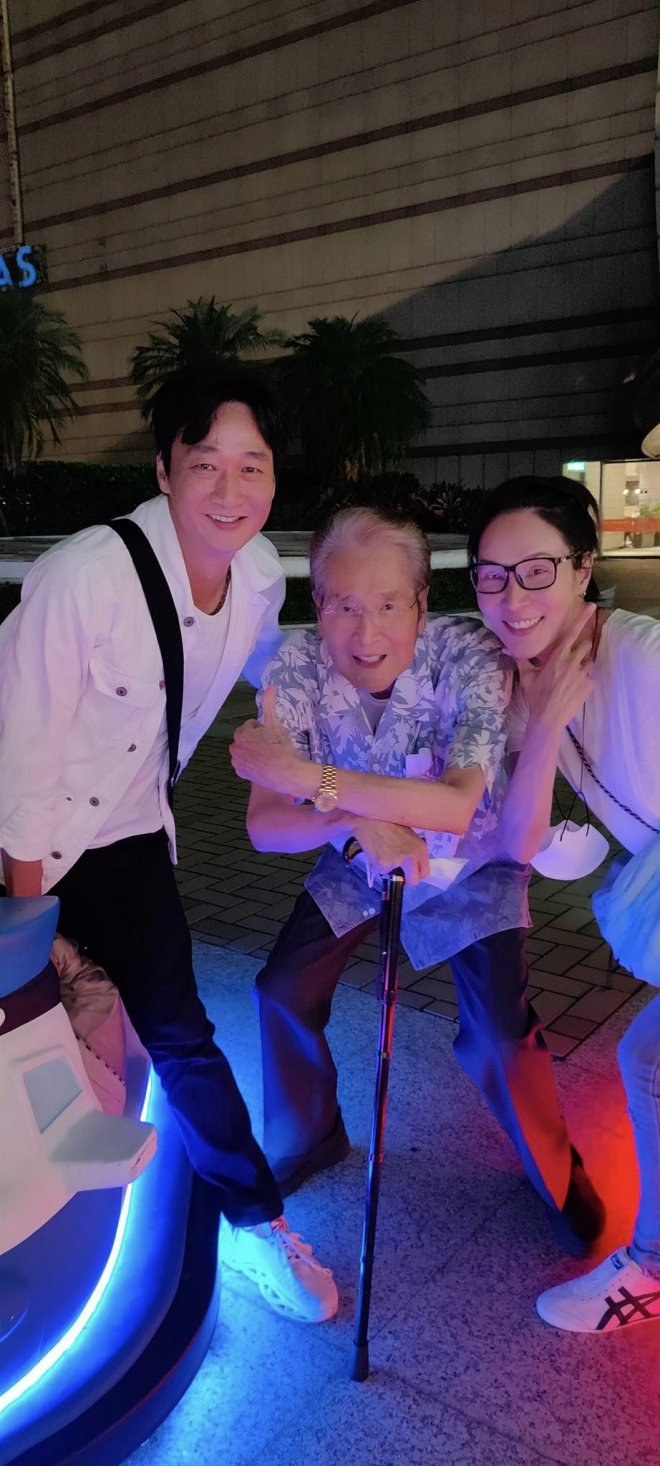 家人們看到石英走累了,便拿出自備的折疊椅讓他坐下,享受著天倫之樂的石英,看起來精神矍鑠、狀態硬朗,當時父親節時,他也曬出全家福照片,和家人們歡慶節日,並祝大家父親節快樂。