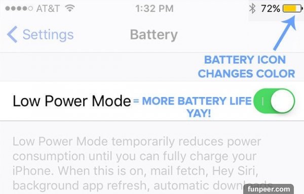 iOS 9 新增了消電量的模式功能,可以透過「設定」→「電池」→「低耗電模式」進行啟用。但要注意啟動後螢幕特效、後臺任務以及動畫桌面都會被禁用。9.螢幕朝下擺放可以更省電,因為這樣就算你接到訊息通知,螢幕也不會亮起。