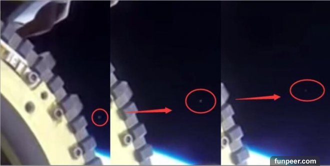 很容易看到,這段在國際空間站拍攝到的畫面背景中,有一個奇異的白色光點在飛來飛去。很明顯,這個白色飛行物不是來自于地球科技!
