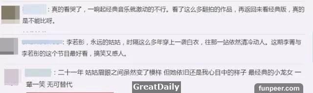 在舞檯燈光下,姑姑還是那個姑姑但好像又有這麼些許的不同,就像是16年後再度相逢的樣子有公號評論:李若彤的擔心根本不存在,經典之所以稱之為經典,就是無論何時何地,只要她出現就會勾起大家無限的情懷和回憶。而網友們是最有發言權的