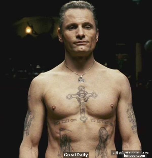 通常來說,罪犯的老大沒有太多刺青,頂多就是在鎖骨上刺一對七角星或者八角星。此外,監獄刺青一般都是為刑事犯所特有的,在布羅尼科夫的素材裡,沒有發現政治犯身上留有這種紋身。