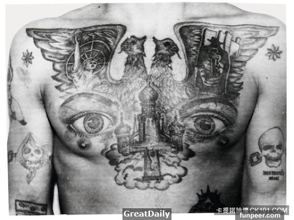 俄羅斯是擁有最複雜、最精湛刺青文化的國家之一,還有幾十種俄羅斯罪犯刺青,每個都有獨特的意義。這些圖案不光記錄了他們所犯的罪行,還是一種與監獄裡的其他人進行交流的方式。