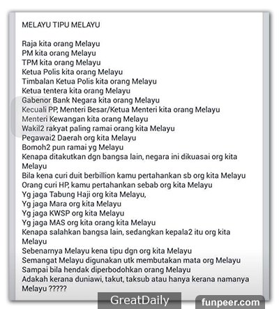 文章也指,其實一切都是馬來人欺騙馬來人,馬來人的精神卻被利用來蒙蔽馬來人的雙眼。