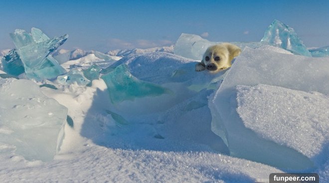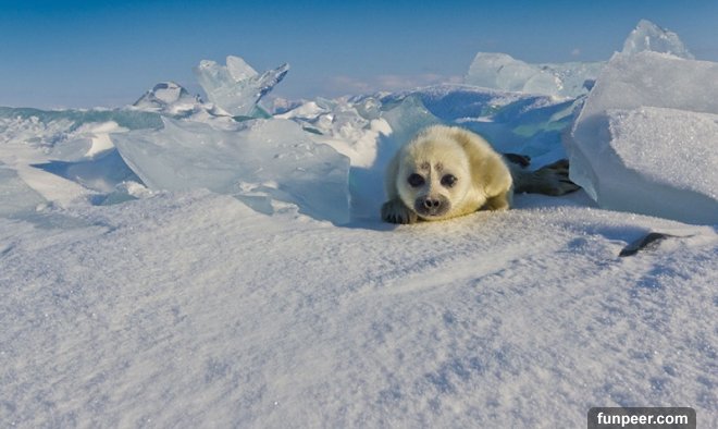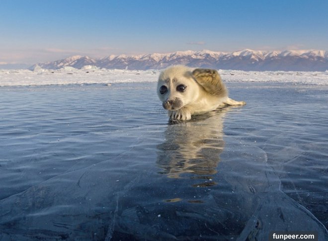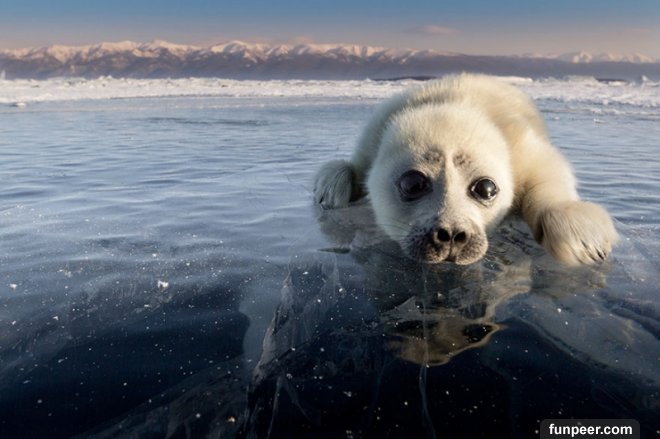 小海獅(source:boredpanda) Alexey希望他的照片不只可以表現出大自然的美,還能呼籲大家保護大自然。冰天雪地中的天真小動物實在是太可愛了,希望大家一起來保護動物喔喔喔喔~