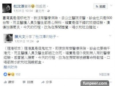 杜汶澤在春節期間遊台卻不小心得了腸胃炎,他到萬芳醫院求診後大讚台灣醫療品質好、價格便宜。港星杜汶澤在春節期間訪台旅遊時不小心染上腸胃炎,他到萬芳醫院求診、領藥只花了500元,讓他大讚台灣真是好地方。不過,這樣的po文卻意外掀起港台兩地網友的兩樣情,台灣的網友感嘆台灣的醫療「物美價廉」被濫用、香港的網友抱怨香港的醫療貴又態度差。
