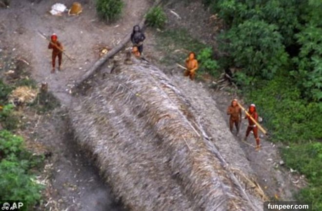 對於每天都滑著手機、看著電視、出門有捷運坐,活在科技進步時代的我們,很難想像在地球的某些角落中,仍然有人類族群以最原始的方式生活著,他們用弓箭打獵、住的是草屋,就連交通工具就是他們的雙腳,當兩種差異很大的文化相遇時,將擦出怎麼樣的火花呢?▼最近一名攝影師透過無人機航拍到亞馬遜一個與世隔絕部落的精彩畫面,看到無人機在自己的家園上空盤旋時,部落裡的人紛紛聚集到一片空地上,好奇地看著這個在天上飛翔的奇怪東西,有的人則拿起武器,像是長棍、弓箭和石塊,意圖擊落無人機。
