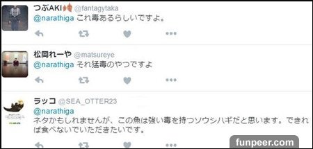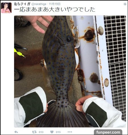 現代人常常流行吃東西之前一定要拍照的習慣,而最近日本竟然有一位網友因為這個習慣而救了自己一命。在前陣子日本一位喜愛釣魚的網友ならティガ(Narathiga)在某天出海釣魚,剛好接近中午正好想要品嘗這條新鮮大魚當作午餐,不過他仍然習慣先拍照貼上Twitter炫耀跟紀念這美好的一刻!▼網友認為釣到一條超大「剝皮魚」!貼文表示「馬上就要做成生魚片來吃了」!▼日本當地非常喜愛將剝皮魚(カワハギ)切成生魚片來品嘗,而內行饕客喜愛將肝臟混合叫由做成肝醬油(キモ醤油)來沾取生魚片來吃!▼但是這時眼尖的網友發現,其實這條根本不是剝皮魚,而是內臟擁有劇毒的「擬態革魨(ソウシハギ)」,牠內臟的毒性遠高於一般河豚的五十倍。若沒有處理好人體內消化這種擬態革魨的毒素,有可能不久就會立即身體麻痺、呼吸困難、劇痛及痙攣等現象發生,嚴重的話可能在不到數十小時內就會身亡!▼許多網友開始回文勸他「這條魚內臟劇毒千萬不要吃!」▼當時這名網友幾小時內都沒有回覆留言讓許多網友非常擔心。直到晚上七點他終於貼文表示:「抱歉由於手機沒電讓大家擔心了,當時看到大家回應的時候已經馬上將這條毒魚放生了!」▼甚至貼文感嘆說:「牠真的很大隻啊!真可惜」,讓網友們都哭笑不得!幸虧這名日本網友在料理之前有將這條魚貼在網路上才沒有釀成大禍,如果沒有相對應的處理,千萬不要輕易嘗試!對於這隻內臟有毒的大魚但仍然非常不捨,哈哈這就是命呀!趕快分享給你朋友,讓大家一起看看這篇吧!