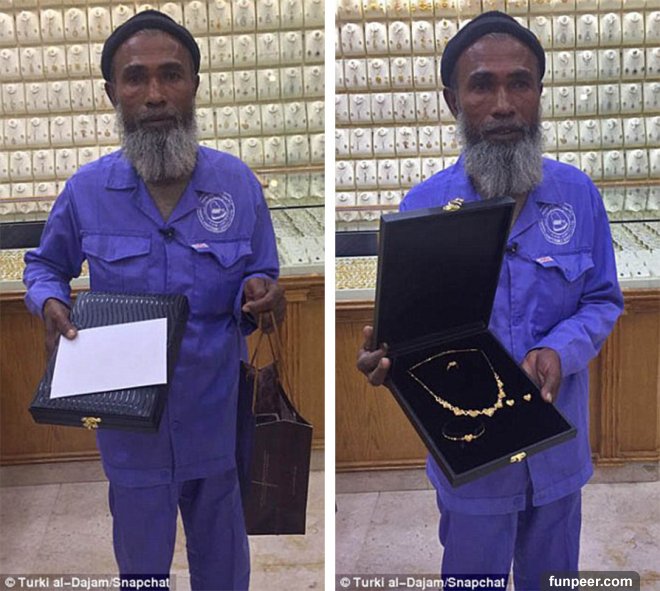 職業本沒有高低貴賤之分,但有些人卻覺得體力勞動者低人一等。今年65歲的孟加拉國阿伯Nazer al-Islam Abdul Karim是一名清潔工,目前在沙烏地阿拉伯利雅德工作。那天他欣賞珠寶店櫥窗內的黃金飾品時,竟被陌生網友拍攝下來嘲笑。一位好心人知道後非常憤怒,決定送給他一些禮物。▼這就是那名網友拍攝的照片,他將照片分享到網路時,還配文說:「他就只配看垃圾。」▼38歲好心人Al-Qahtani看到後非常生氣,他是阿拉伯一個名為「Ensaneyat」的人道主義推特帳號創始人,致力於幫助當地有需要的人。看到這張充滿諷刺、鄙夷的照片後,他忍不住譴責拍照的人太冷漠,並決定找到Karim提供幫助。▼在網友們的幫助下,Al-Qahtani順利找到那間珠寶店,並等到了來這裡工作的Karim。他送給Karim幾袋大米、一些蜂蜜、回國的往返機票、兩部手機,還有黃金首飾。其他網友看到後也表示會繼續給Karim送禮物。▼Karim表示,他當時在清掃街道,掃到珠寶店時看到了櫥窗中的金項鍊,覺得很漂亮,就停下腳步看了一會兒。沒想到後來一位好心人出現,並送來不少禮物,他不知道自己被嘲笑的事,不過對那名好心人充滿感激。愛美之心人皆有之,Karim只是覺得櫥窗中的金飾很漂亮,所以駐足欣賞,沒想到竟會被人惡意嘲笑。不知道那些目空一切的人的優越感是從哪裡來的,沒有體力勞動者的辛苦工作,他們恐怕也沒心情悠閒逛街,街上的垃圾就夠他們頭疼。Karim因禍得福,收到了不少禮物,現在他終於可以休息一陣,回家看看了。