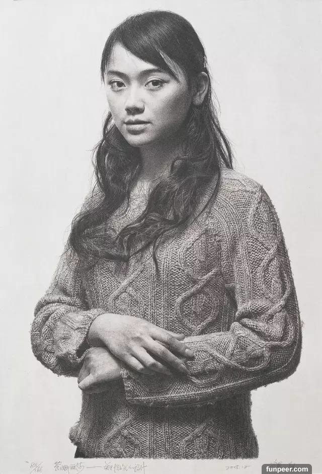 ▼其實這是一幅肖像畫,就連毛線衣的纖維都靠畫筆完全呈現,看起來就像是一件真的毛衣。