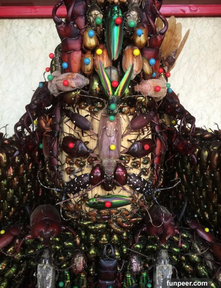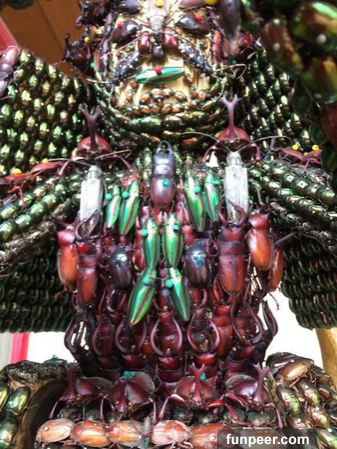 ▼外觀看起來真的非常獨特,而且也非常堅固的感覺。Yoneji Inamura說,如果要完成這樣作品需要使用超過5000隻昆蟲。