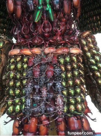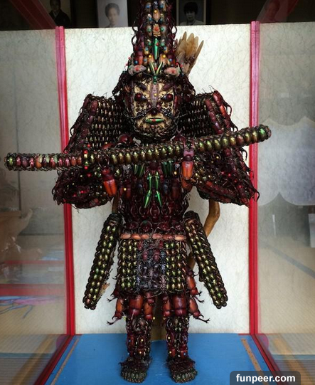 ▼沒錯,這件日本盔甲就是集結了成千上萬的昆蟲屍體所製造而成的。