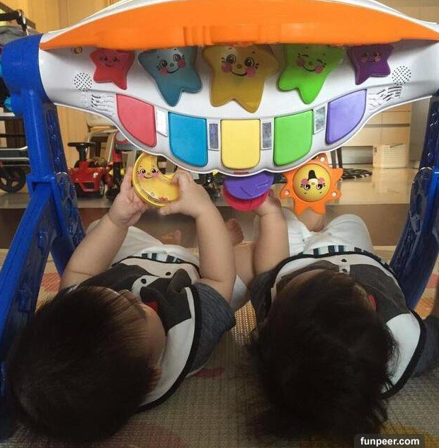 ▼林志穎去年喜獲雙胞胎兒子Jenson和Kyson,兄弟倆是異卵雙胞胎,不怕認不出來。![]()