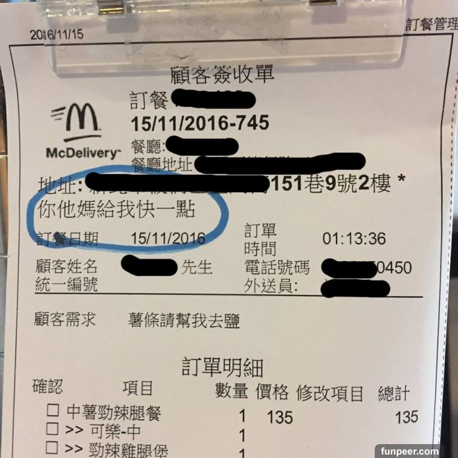 隨著生活越來越多元,當然全世界最大的速食龍頭業者也不例外,麥當勞推出「歡樂送」給許多消費者添加了一項福利,但有些消費者似乎不這麼領情。在臉書粉絲團由「靠北麥當勞」前陣子貼的這幾張圖,當你看到下面這三張麥當勞外送單的時候,可能乍看沒什麼,但仔細看了備註之後…..