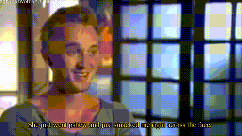 ▼湯姆曾經跟艾瑪對戲,本來想說讓她用假動作「打自己一巴掌」,沒想到認真的艾瑪竟然結結實實給了他一下。