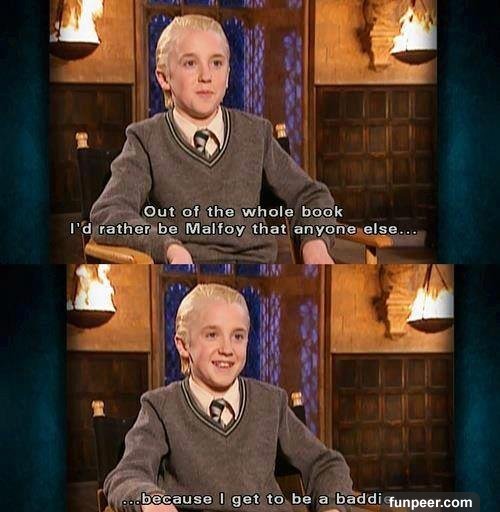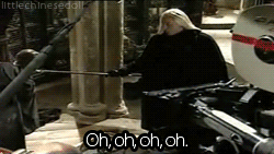 ▼這場戲中,魯休思馬份本來應該用魔杖推開哈利,沒想到居然勾住了他的衣服。如果魔法世界真的出現這種事,恐怕會笑死人吧。