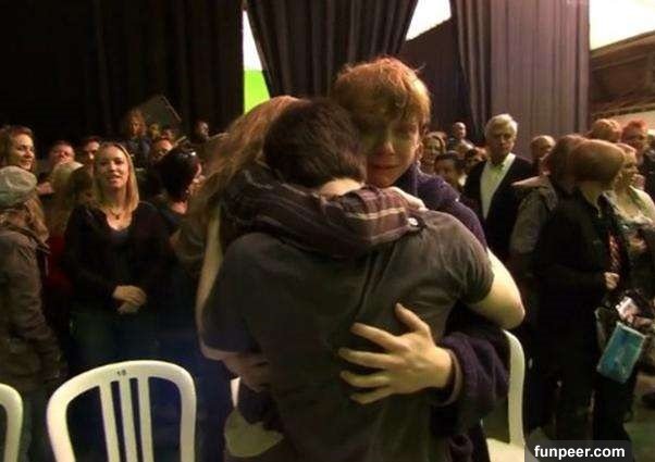▼《哈利波特》系列拍攝10年,三個主角都成為了親密的朋友,電影完結時,他們真的好難過。