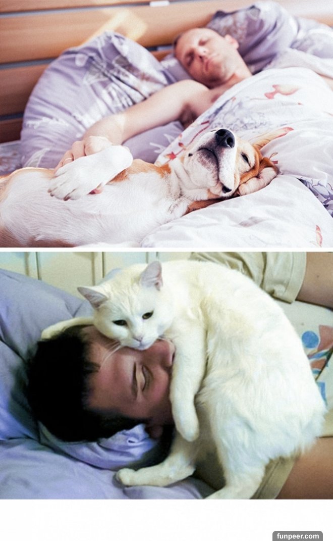 ▼9.和飼主一起入睡時,睡姿絕對不同。