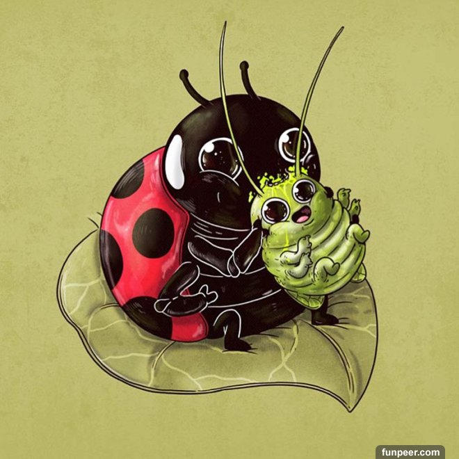 自然界中的動物每天都在為生存而戰,血腥與殺戮無處不在。美國芝加哥藝術家Alex Solis卻用一種可愛又詭異的畫風,將那些恐怖的鏡頭變得有點萌。看清插畫中的內容後,你一定覺得毛骨悚然,但它們的風格又出奇可愛。▼蟲子都被吃掉了,為什麼還要笑得這麼開心?