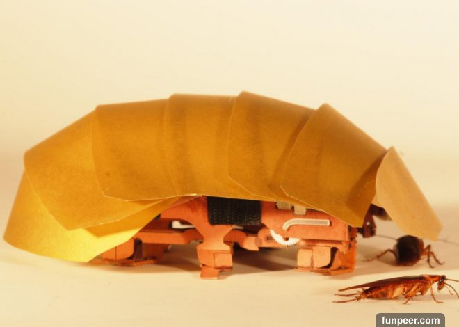 ▼蟑螂的特性也讓這生物學家們有了不少靈感,他們研究了一款迷你機器人,如果受到上下擠壓時機器人的腳便會向外身長開來,將原先高度降低到本來的一半,透過這樣用摺紙方式製作出來的外殼不但簡單又非常低成本。