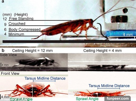 ▼而最近美國加州生物學家Kaushik Jayaram與Robert Full兩人共同研究發現蟑螂竟然能夠在狹窄鳳下終將自己的身體壓扁!所以這絕對不是因為自己居家結構的問題,而是牠們與生俱來就有這樣的軟骨能力!