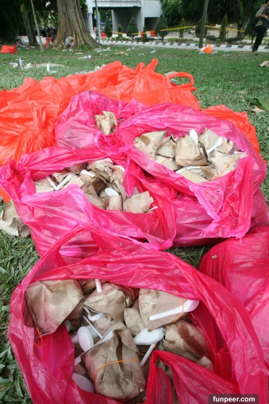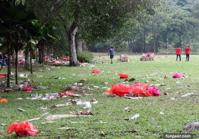 紅衣人散去後,默布草場上留下遍地的垃圾。此外,一堆尚未分派的食物,浪費地被丟棄在默布草場上。